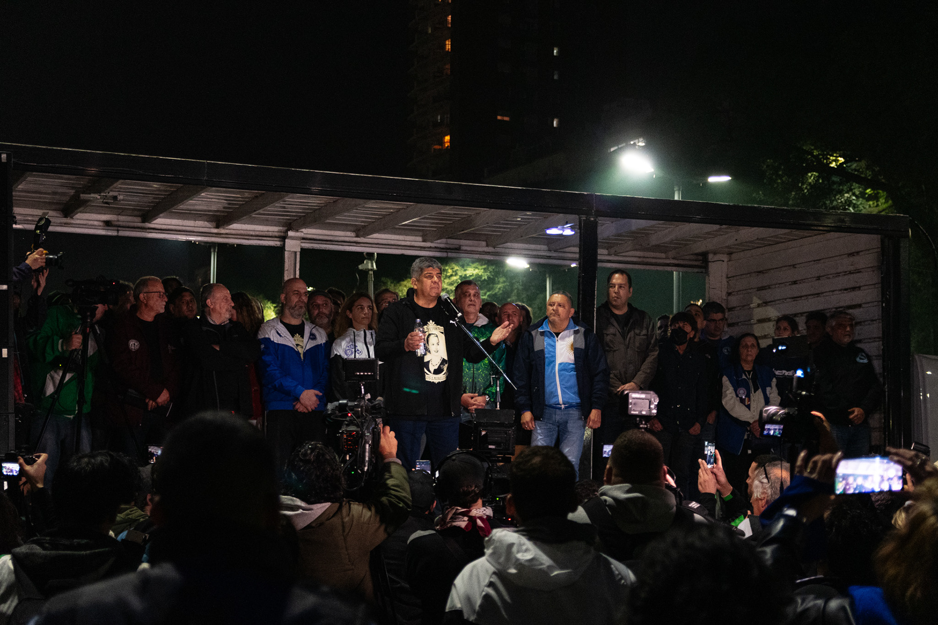 Organizaciones sociales y sindicales realizaron un acto frente al Ministerio de Desarrollo Social sobre la Av. 9 de Julio en conmemoración del aniversario N° 70 del fallecimiento de Eva Duarte de Perón. CABA, Argentina. El 26 de Julio del 2022. FOTOS/Sebastian Hipperdinger Estas fotografías están protegidas por la Ley de Propiedad Intelectual N° 11,723 de Argentina. © Sebastián Hipperdinger